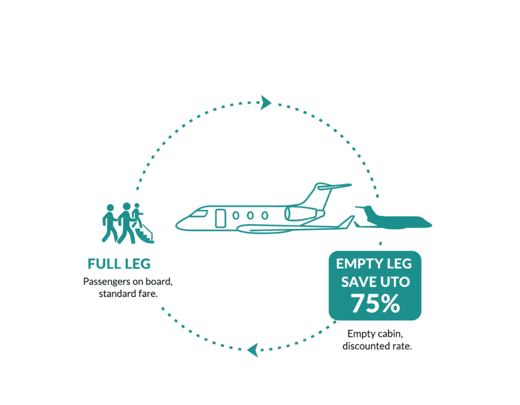 엠프티레그 (Empty Leg) — 전용기가 승객을 내려준 뒤 빈 상태로 복귀하는 구간을 뜻합니다. 이 구간을 활용하면 정상 가격 대비 최대 50~75% 할인된 가격으로 전용기를 예약할 수 있습니다.