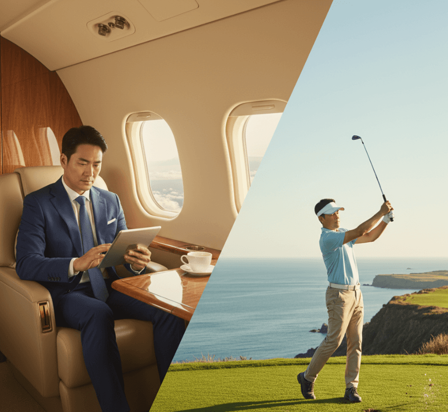 K-블레저(K-Bleisure)는 비즈니스 출장과 레저 여행을 결합하는 한국형 프리미엄 여행 트렌드입니다. 해외 출장 후 주말을 활용해 인근 리조트로 이동하거나, 비즈니스 미팅과 골프 라운딩을 하루에 소화하는 여정 — 이 모든 것이 전용기 예약의 유연성 덕분에 가능합니다.